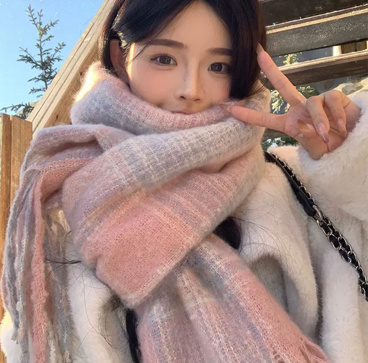 W01(W01) 韩系冬季甜美风格纹须须边3色围巾