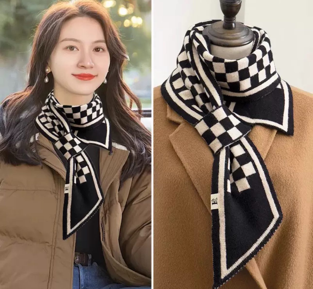 W02(W02) 韩版交叉长条格纹与千鸟格与豹纹3色穿带围脖