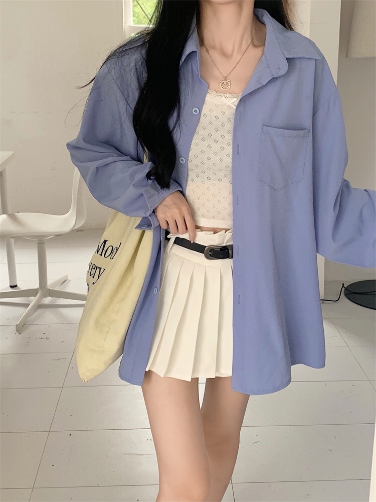 A3511(7309) 韩版多巴胺休闲风百搭翻领前排钮5色衬衫上衣
