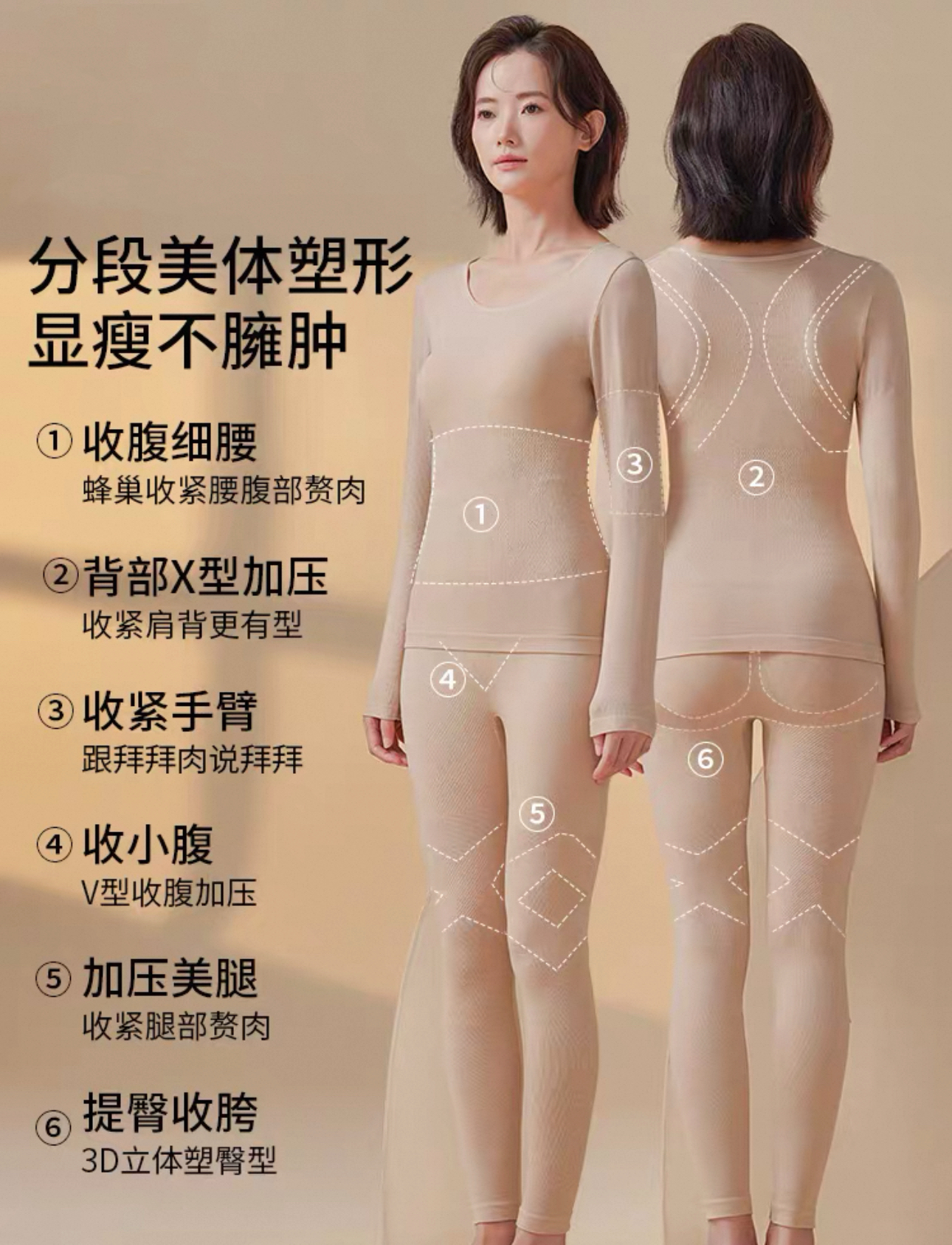 B01(H02) 保暖美体塑形薄款秋冬打底上衣与长裤黑肤套装 (5°至 15°)