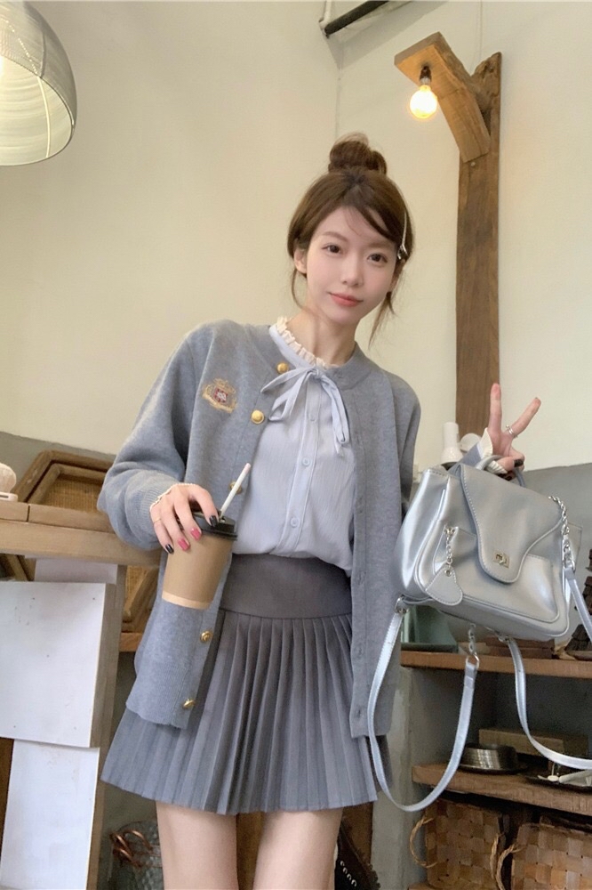 A3364(17101开衫) 韩系减龄皇牌LOGO前排钮灰针织开衫