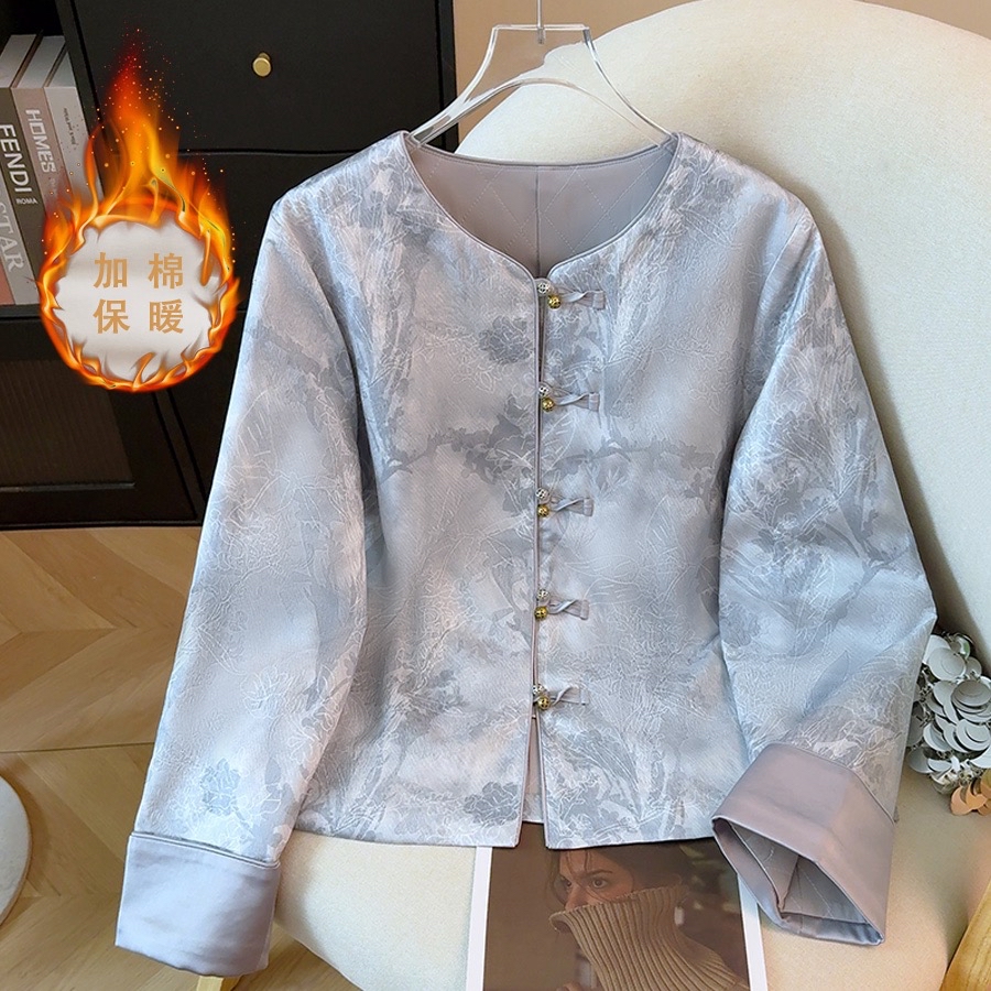 A3285(9917) 新中式温柔风夹棉重工刺绣提花长亭前排粉盘扣粉外套上衣